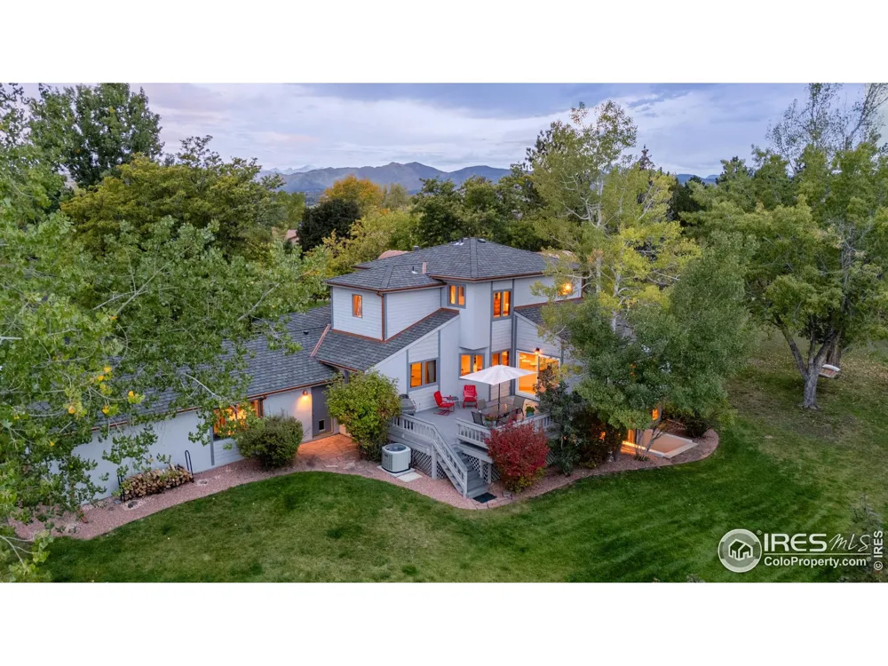Experience the best of SW Longmont living: quiet, scenic, and connected. From nature to local shops and restaurants, everything you love is close by, with Longmont, Niwot, and Boulder just a short drive away! After visiting a nearby town, imagine coming home to your own custom retreat set on two lush acres with a private yard, mature trees, and a six-bed organic garden bursting with vegetables and flowers. Outdoors, there's room for everyone to play, relax, and gather. Multiple spaces - including a horseshoe pit - make the expansive yard perfect for both recreation and entertaining. Gardeners and dog lovers alike will find this property a dream come true. Step inside through striking double doors and you're welcomed by warm Southwestern architecture. Designed with both comfort and entertaining in mind, the home's cozy layout connects a gourmet kitchen, living area, and wood-burning fireplace-an inviting space for family and friends. From here, two decks extend the living areas outdoors, offering peaceful spots to unwind in every season. Upstairs, the primary suite spans the entire second floor, creating a true retreat. A cozy window nook invites you to curl up with a book, while the spacious five-piece bath-with a soaking tub-makes relaxation easy. On the main floor, two additional bedrooms provide comfort and convenience, while a fourth bedroom rests on the lower level. Downstairs also offers a flexible recreation room and office with direct access to the backyard. Nestled on a quiet private street, this serene neighborhood feels worlds away yet offers convenient access to the best of Colorado.